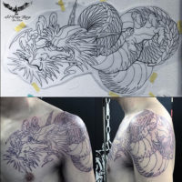 本日もご来店ありがとうございます。 A4サイズを超えるサイズでしたが打ち合わせ後、下絵を作成し施術を行いました。 当スタジオでは空き枠があれば当日のお問い合わせでも飛び込みに対応しています。 今週もまだまだご案内可能です …